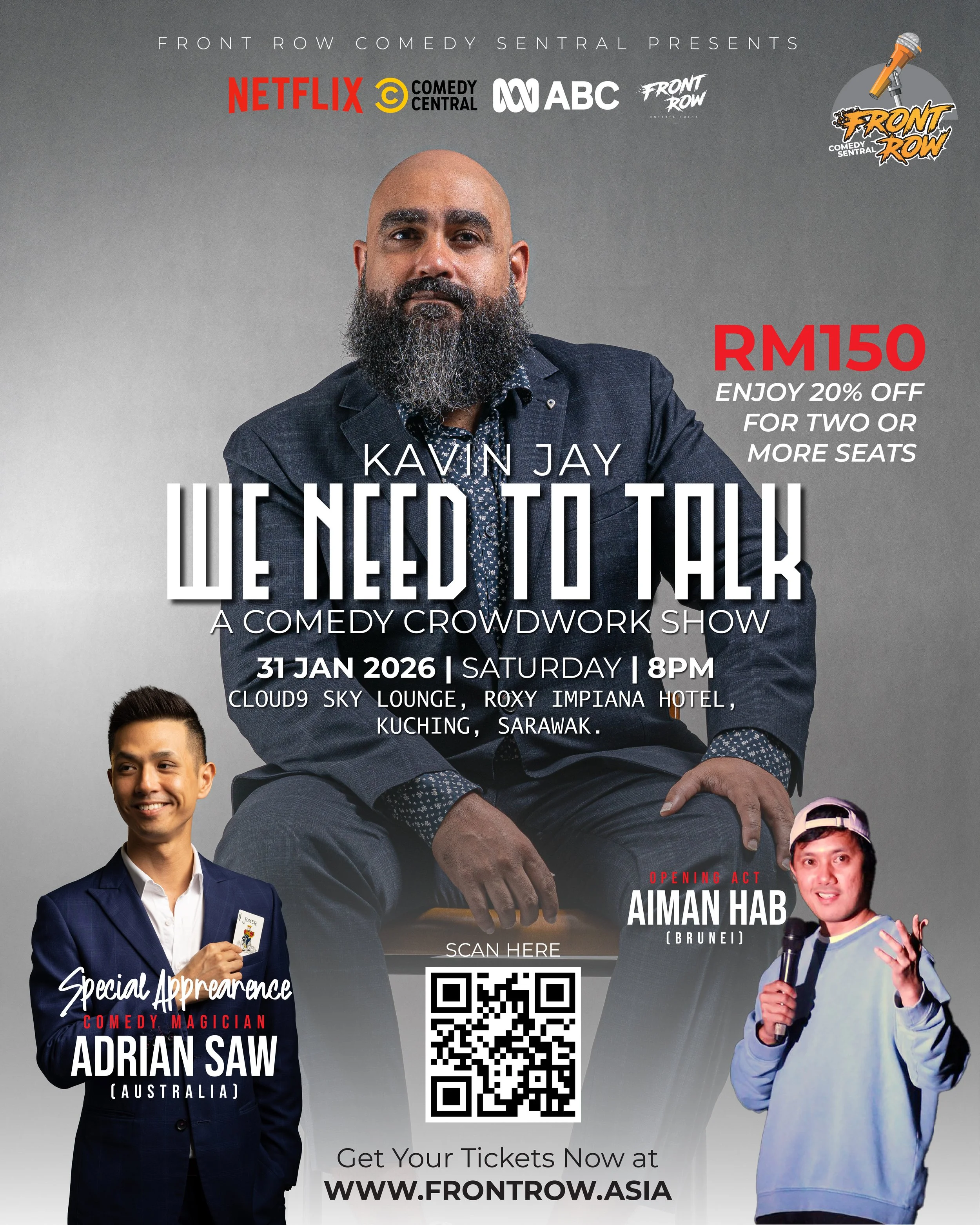 He has performed globally on popular channels such the ABC, BBC and Comedy Central and we are proud to have him on Front Row Comedy Sentral come January!